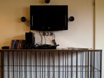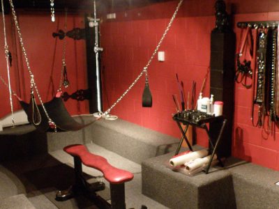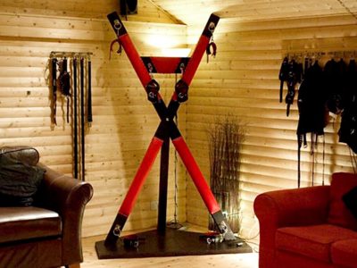 В центре стоит поставить большой удобный черный кожаный диван, в ногах уместить небольшой столик из черного стекла. Напротив – большую блестящую плазму во всю стену. У окон и стен можно расположить открытые системы вешалок, на которые можно будет повесить тематическую одежду. В свободных пространствах как раз-таки можно расположить различные БДСМ-девайсы. Но стоит учитывать, что здесь их не должно быть много. Разве что как намек. Все-таки это общественная комната, где, скорее всего, владельцы будут больше времени проводить за работой или едой. А вот на полках можно расставить различные статуэтки и девайсы с актуальным содержанием – фаллические символы, браслеты с шипами или ошейники. Комната готова.